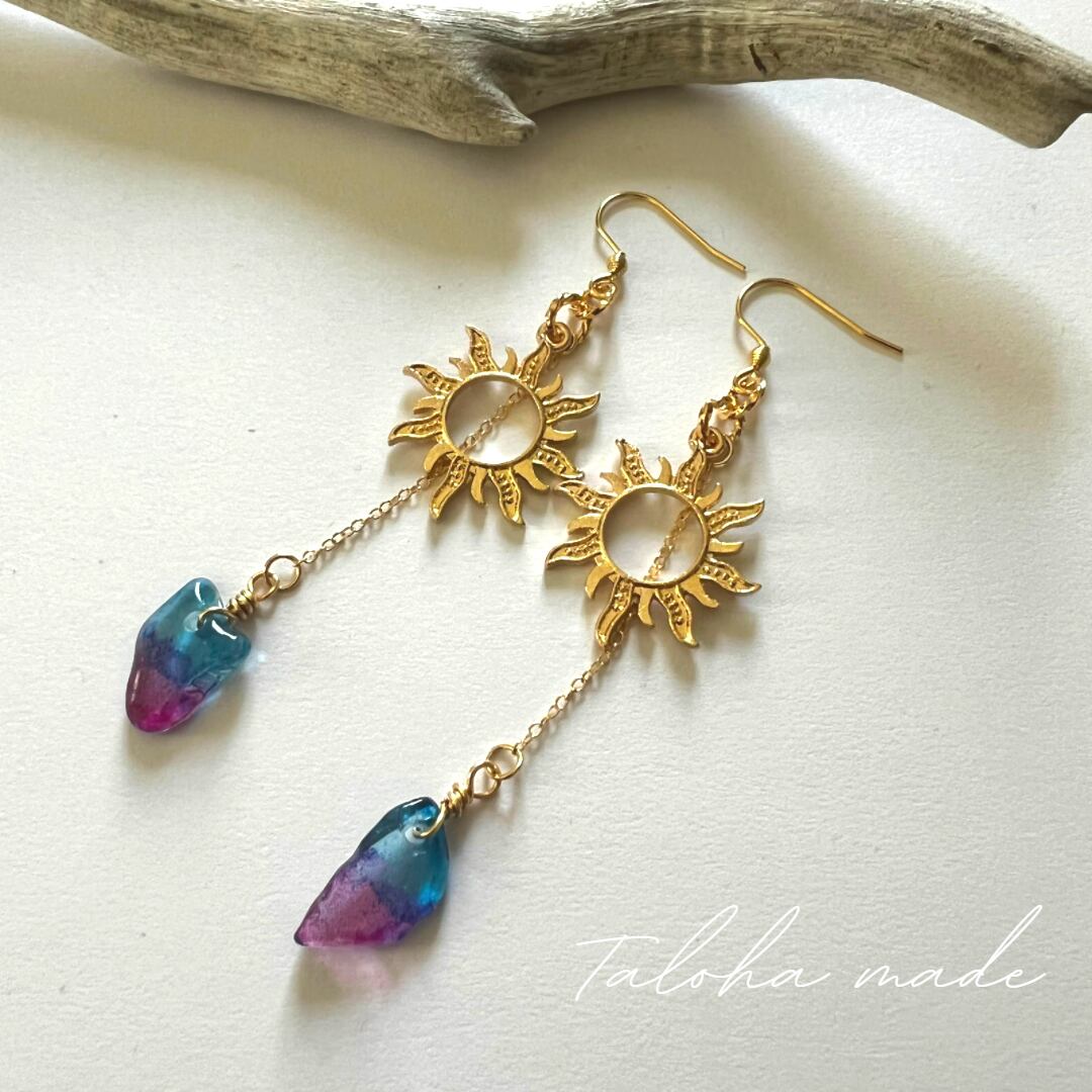 POWER CHARM®ピアス≫ピンク×ブルーサンチャーム:サージカルステンレス