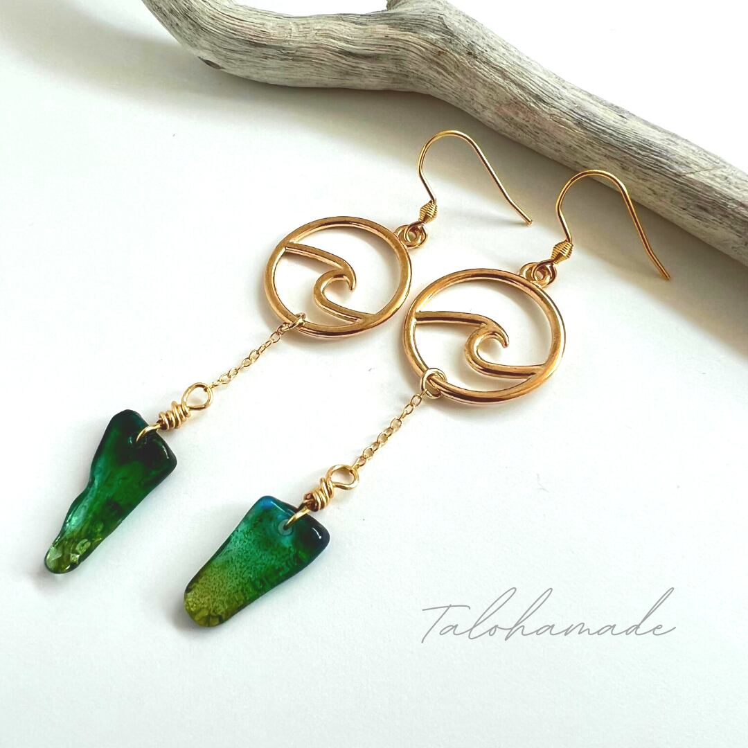 POWER CHARM®ピアス≫グリーンオーシャンウェーブ:サージカルステンレス