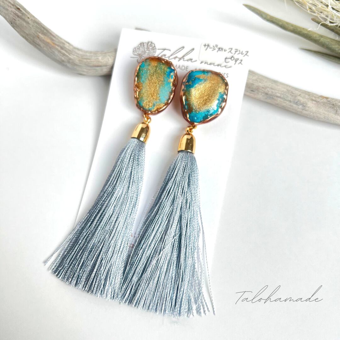 POWER CHARM®ピアス≫タッセルターコイズ:サージカルステンレス