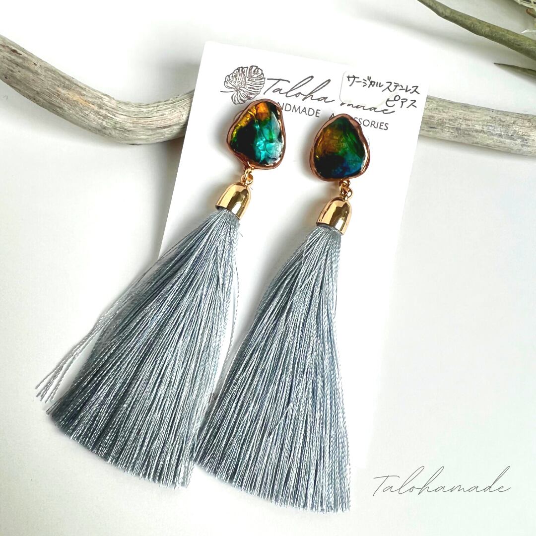 POWER CHARM®ピアス≫タッセルマリンブルー:サージカルステンレス