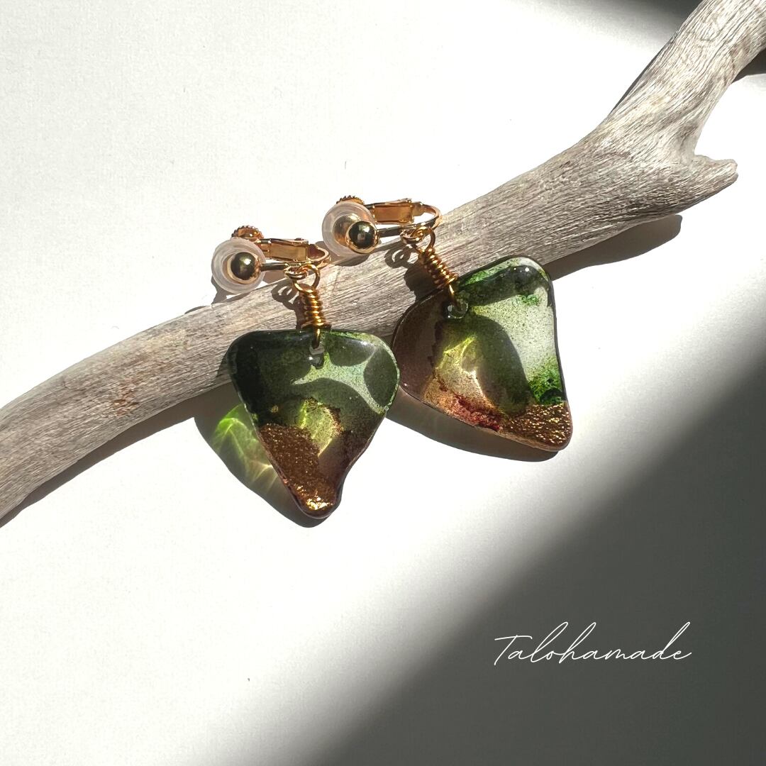 ・深い緑とブラウンにゴールドをあしらった