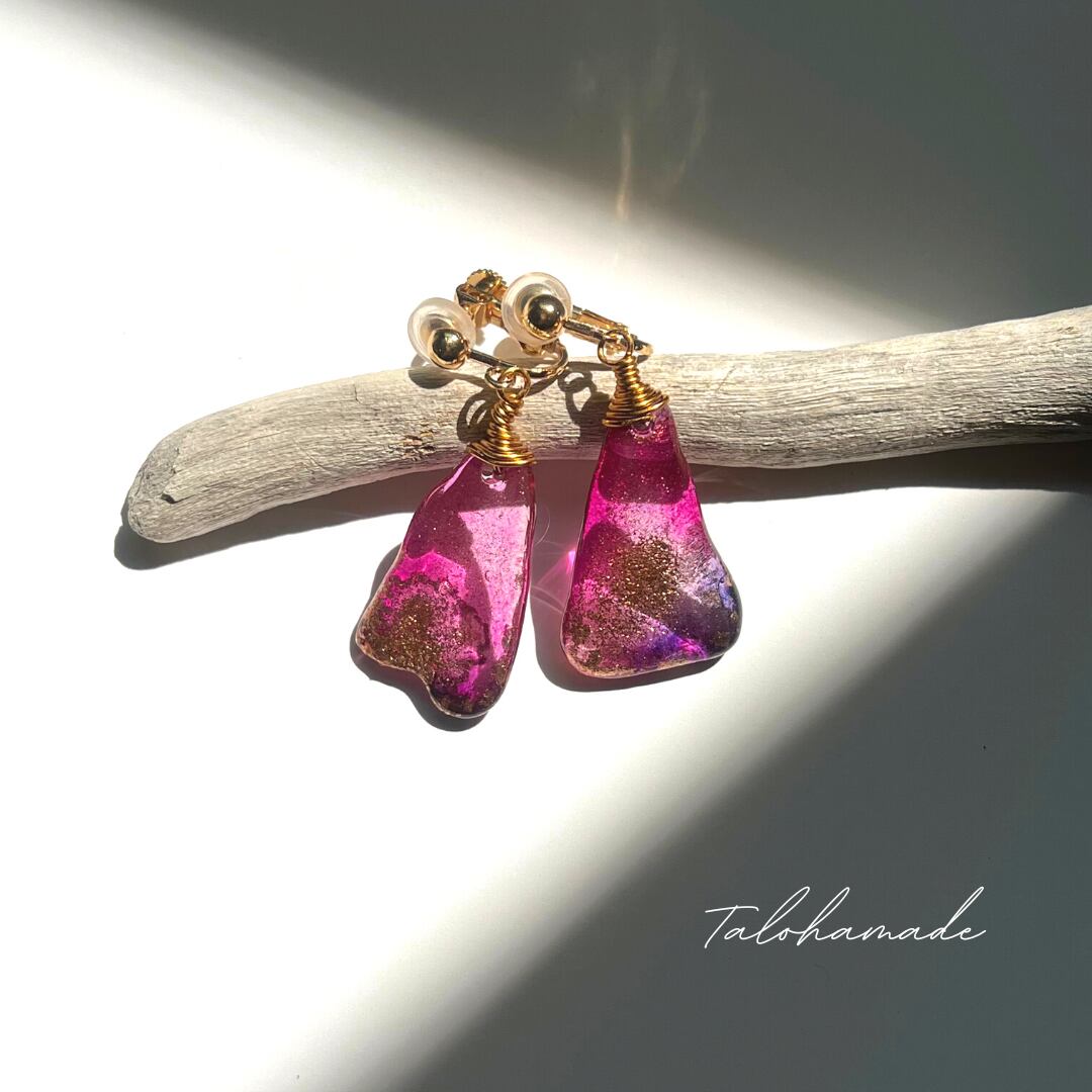 ・ピンクっぽいむらさきのPOWER CHARM®イヤリングです。