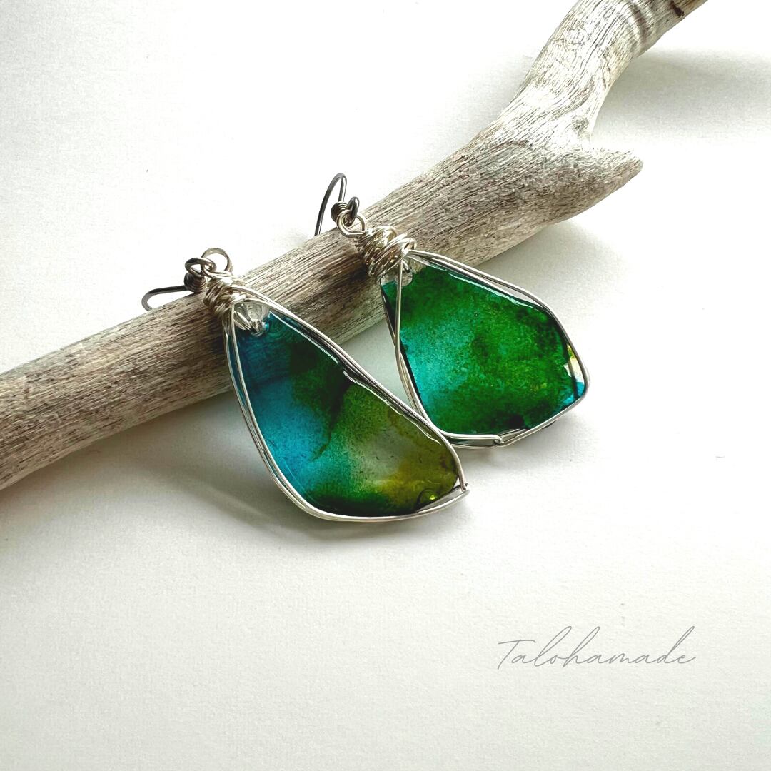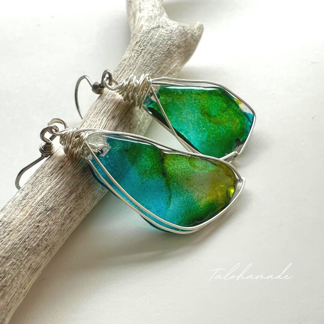 ワイヤーラッピングしたピアスです。