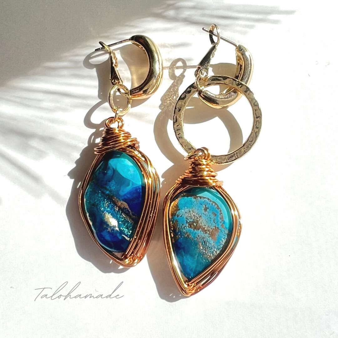ワイヤーラッピングしたピアスです。