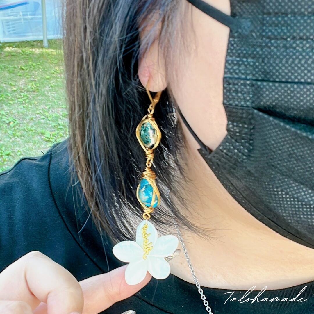 POWERCHARM®ピアス・イヤリング≫Plumeria OceanBlue:サージカルステンレス