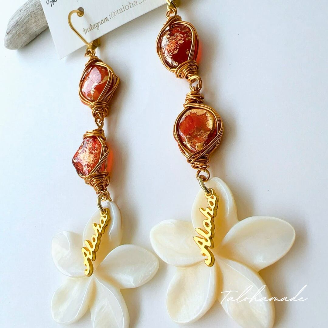 ・淡水シェルのプルメリアが可愛いロングピアス
